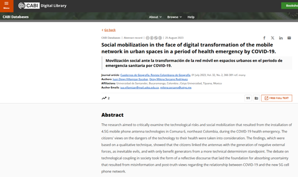 El estudio analizó, desde una perspectiva crítica, las posiciones sobre la movilización ciudadana ante el riesgo por tecnología de antenas de comunicación móvil 4.5G en su instalación en la Comuna 6 del nororiente de Colombia, en el contexto de emergencia sanitaria por COVID-19. Se tuvieron en cuenta las opiniones sociales de los ciudadanos sobre el posible daño a la salud por el servicio de comunicación móvil. Se empleó una metodología cualitativa para el procesamiento de datos. Estas posiciones se formaron relacionando las antenas con la generación de externalidades negativas, como daños inevitables y, desde un punto de vista determinista, como generadoras de beneficios. El debate reflexivo sobre la incorporación de los artefactos en la comunidad sentó las bases para la aceptación de la incertidumbre que había resultado de la desinformación y la posverdad relacionadas con el COVID-19 y la nueva red de telefonía celular 5G.