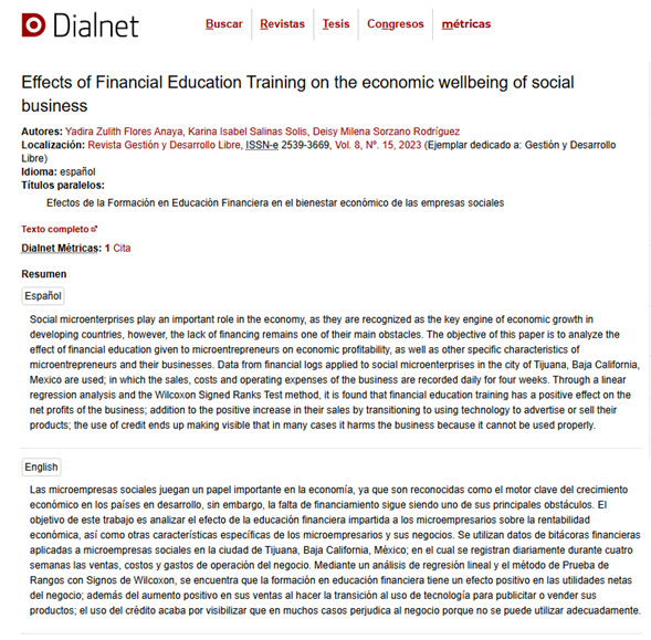 Social microenterprises play an important role in the economy, as they are recognized as the key engine of economic growth in developing countries, however, the lack of financing remains one of their main obstacles. The objective of this paper is to analyze the effect of financial education given to microentrepreneurs on economic profitability, as well as other specific characteristics of microentrepreneurs and their businesses.