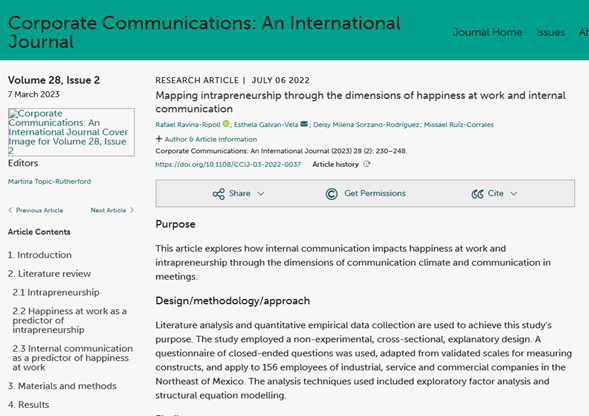 Mapping intrapreneurship through the dimensions of happiness at work and internal communication