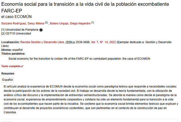 Economía social para la transición a la vida civil de la población excombatiente FARC-EP: el caso ECOMÚN